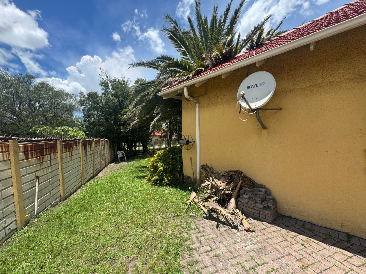 This charming residential property, nestled in the established suburb of Evander, Secunda, offers a unique blend of comfort and outdoor living on a generous 793 sqm erf. The exterior features a distinctive yellow main house with a red tiled roof, complemented by a brick-paved driveway that provides ample parking and leads to a well-maintained garden. A prominent thatched outdoor entertainment area, complete with a lapa and deck, sets the stage for relaxed gatherings and al fresco dining, while a refreshing pool offers a private oasis amidst mature trees. Step inside to discover a functional layout designed for everyday living. The home boasts two comfortable bedrooms and two bathrooms, including a convenient en-suite. Living spaces are thoughtfully arranged with two lounges and a dedicated dining room, providing versatile areas for relaxation and entertaining. Throughout the main living areas, durable tiled flooring ensures practicality, while unique wooden paneled ceilings add character and warmth to the interior. The kitchen is equipped with ample wooden cabinetry, a double sink, and a built-in oven, offering a practical space for culinary pursuits. Natural light streams in through windows, enhancing the inviting atmosphere. Additionally, a dedicated study provides a quiet retreat for work or personal projects, and a laundry area adds to the home's functionality. Outdoor amenities include a single garage, further enhancing convenience. The property's established garden and paved areas contribute to its overall appeal, creating a welcoming environment. Security is addressed with burglar bars, providing peace of mind for residents. Evander, a part of the larger Secunda area, offers a suburban lifestyle with access to local amenities. This property presents an excellent opportunity for those seeking a home with character and ample outdoor space. Key Features: * 2 Bedrooms, 2 Bathrooms (1 En-suite) * 2 Lounges & 1 Dining Room * Dedicated Study * Functional Kitchen with Wooden Cabinetry * Thatched Lapa & Deck * Swimming Pool * Single Garage * Paved Driveway & Garden * Wooden Ceilings & Tiled Floors * Burglar Bars