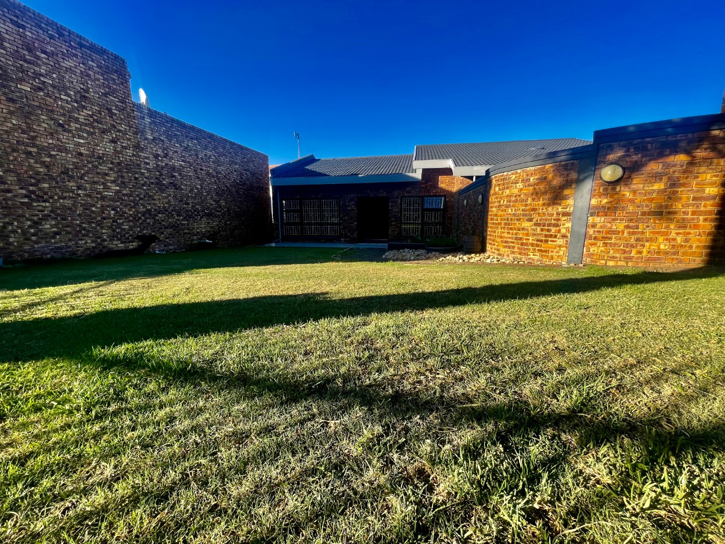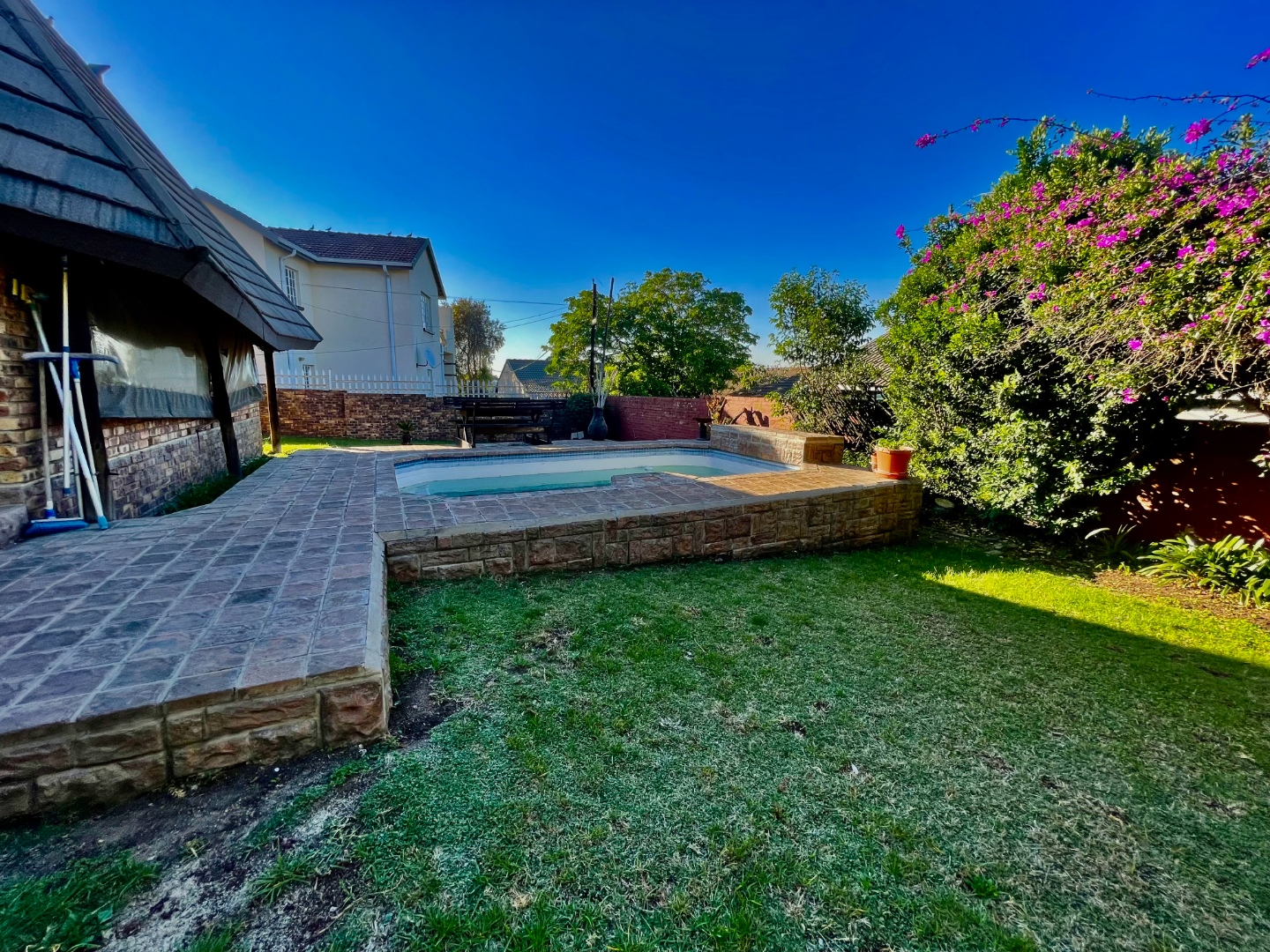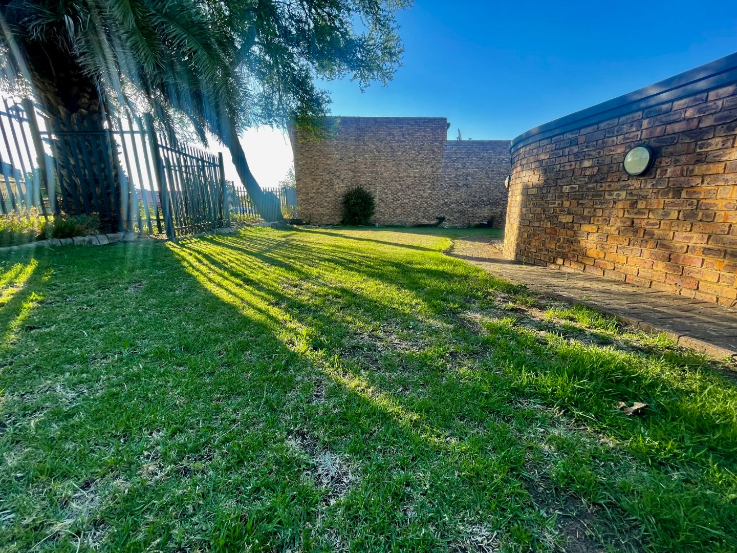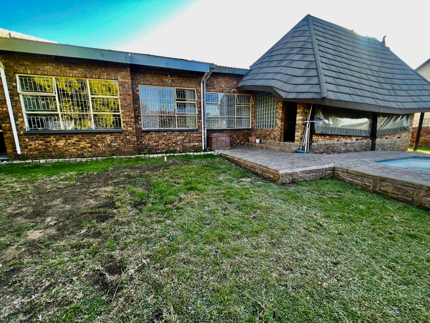 Discover an exceptional residential offering in the esteemed locale of Kinross, Secunda. This distinguished property, set on a generous 1000 sqm erf, presents an immediate impression of refined elegance. A grand entrance hall welcomes you, setting the tone for the sophisticated interiors that unfold within this magnificent home. Designed for discerning tastes, the residence boasts an open-plan layout that seamlessly connects its various living zones. Two expansive lounges provide ample space for relaxation and formal entertaining, complemented by a dedicated dining room. The well-appointed kitchen ensures effortless culinary creation. Further enhancing the interior appeal are a dedicated study for quiet contemplation and a comfortable family TV room, catering to diverse lifestyle needs. Exquisite special lighting and elegant wood ceilings throughout elevate the ambiance, creating an atmosphere of understated luxury. The private wing features four generously proportioned bedrooms, offering serene sanctuaries. Three meticulously designed bathrooms, including a luxurious en-suite, provide ultimate comfort. Step outside to a private oasis designed for grand entertaining: a meticulously landscaped garden with an efficient irrigation system and elegant paving frames a sparkling swimming pool. An impressive lapa and a dedicated braai room, featuring a built-in braai, promise unforgettable outdoor experiences. Practical additions include a charming Wendy house and convenient outside toilets. This pet-friendly haven offers ample space for enjoyment. Security is thoughtfully addressed with the property being totally walled and fitted with robust burglar bars, providing peace of mind. Nestled in the desirable Kinross area, this home offers a tranquil suburban lifestyle while remaining conveniently close to the amenities of Secunda. Key Features: * Four luxurious bedrooms * Three elegant bathrooms, including one en-suite * Two spacious lounges and a family TV room * Dedicated study and dining room * Sparkling swimming pool with lapa and braai room * Double garage and two additional parking spaces * Expansive 1000 sqm erf with irrigated garden * Totally walled property with burglar bars * Open-plan design with special lighting and wood ceilings