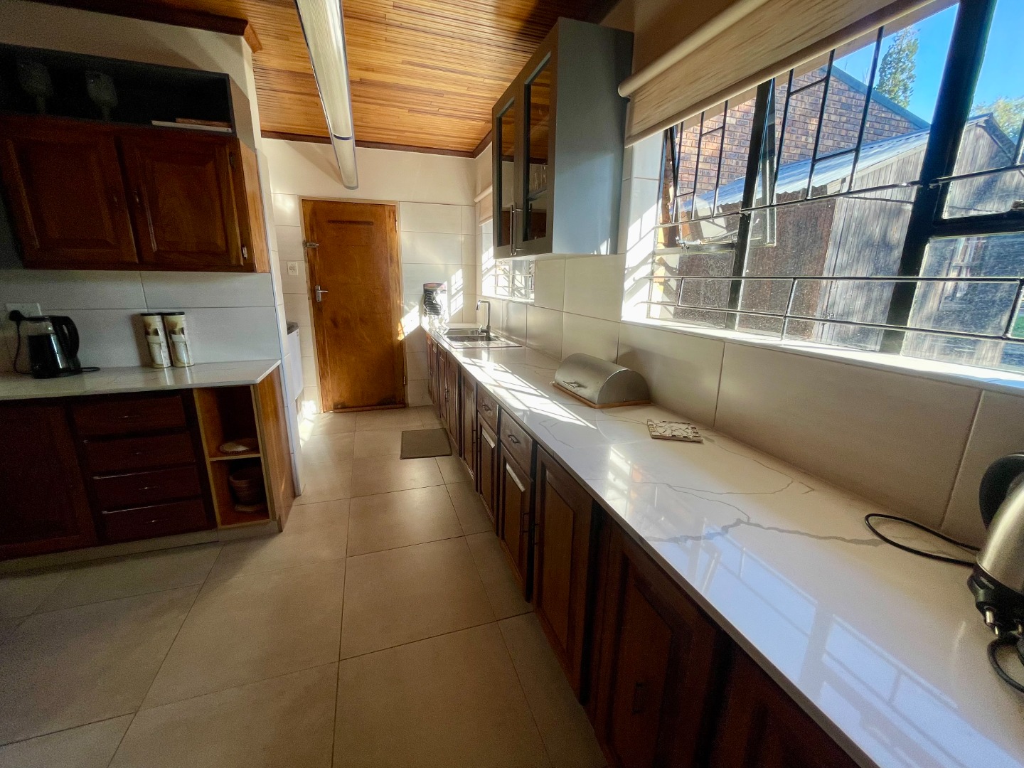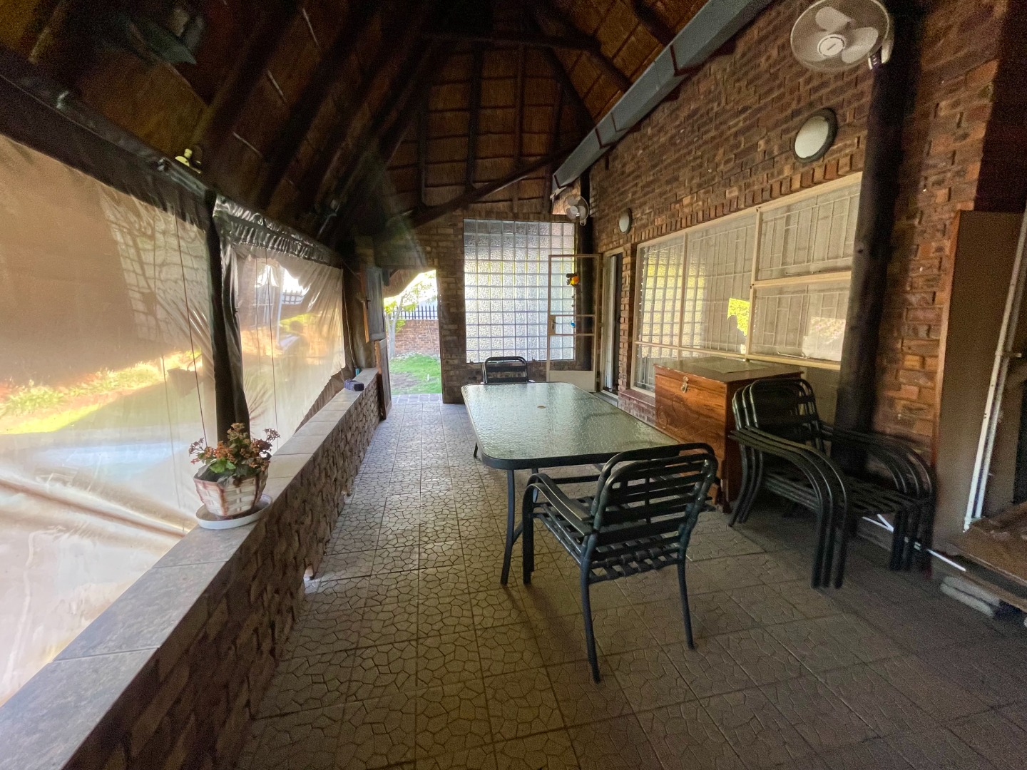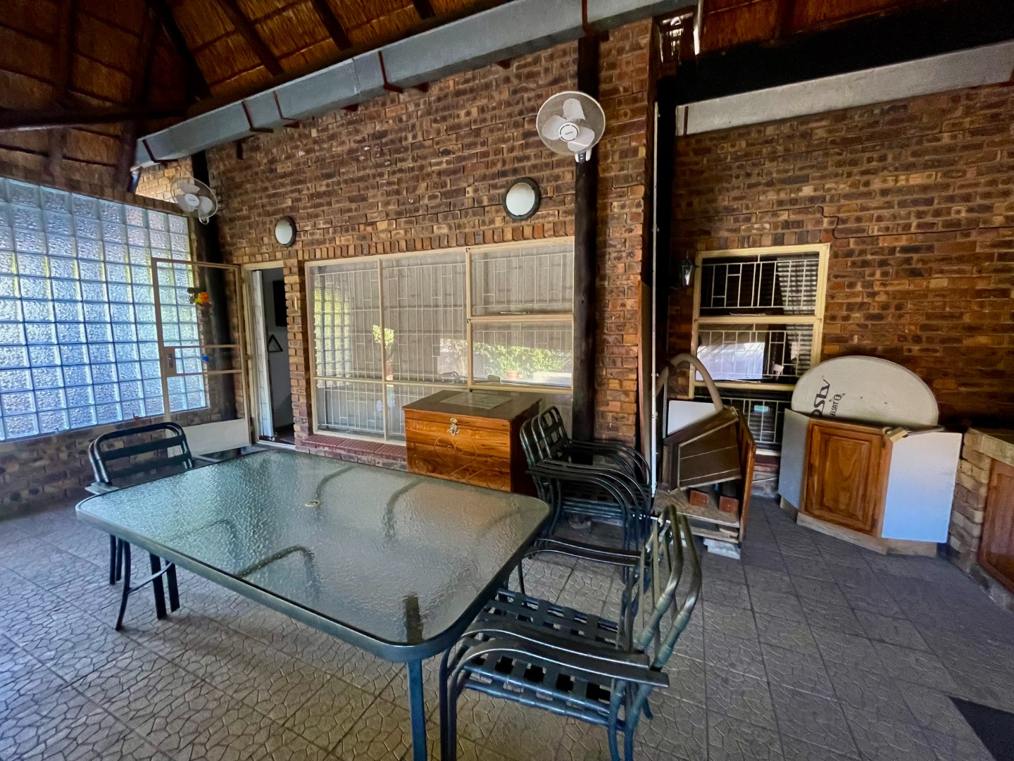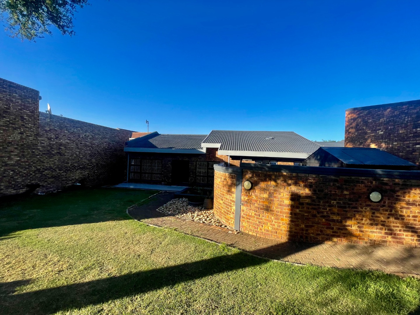 Discover an exceptional residential offering in the esteemed locale of Kinross, Secunda. This distinguished property, set on a generous 1000 sqm erf, presents an immediate impression of refined elegance. A grand entrance hall welcomes you, setting the tone for the sophisticated interiors that unfold within this magnificent home. Designed for discerning tastes, the residence boasts an open-plan layout that seamlessly connects its various living zones. Two expansive lounges provide ample space for relaxation and formal entertaining, complemented by a dedicated dining room. The well-appointed kitchen ensures effortless culinary creation. Further enhancing the interior appeal are a dedicated study for quiet contemplation and a comfortable family TV room, catering to diverse lifestyle needs. Exquisite special lighting and elegant wood ceilings throughout elevate the ambiance, creating an atmosphere of understated luxury. The private wing features four generously proportioned bedrooms, offering serene sanctuaries. Three meticulously designed bathrooms, including a luxurious en-suite, provide ultimate comfort. Step outside to a private oasis designed for grand entertaining: a meticulously landscaped garden with an efficient irrigation system and elegant paving frames a sparkling swimming pool. An impressive lapa and a dedicated braai room, featuring a built-in braai, promise unforgettable outdoor experiences. Practical additions include a charming Wendy house and convenient outside toilets. This pet-friendly haven offers ample space for enjoyment. Security is thoughtfully addressed with the property being totally walled and fitted with robust burglar bars, providing peace of mind. Nestled in the desirable Kinross area, this home offers a tranquil suburban lifestyle while remaining conveniently close to the amenities of Secunda. Key Features: * Four luxurious bedrooms * Three elegant bathrooms, including one en-suite * Two spacious lounges and a family TV room * Dedicated study and dining room * Sparkling swimming pool with lapa and braai room * Double garage and two additional parking spaces * Expansive 1000 sqm erf with irrigated garden * Totally walled property with burglar bars * Open-plan design with special lighting and wood ceilings