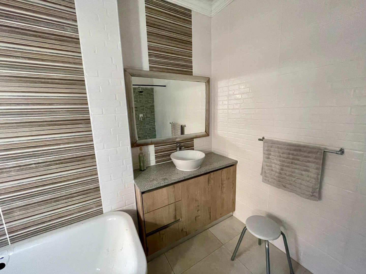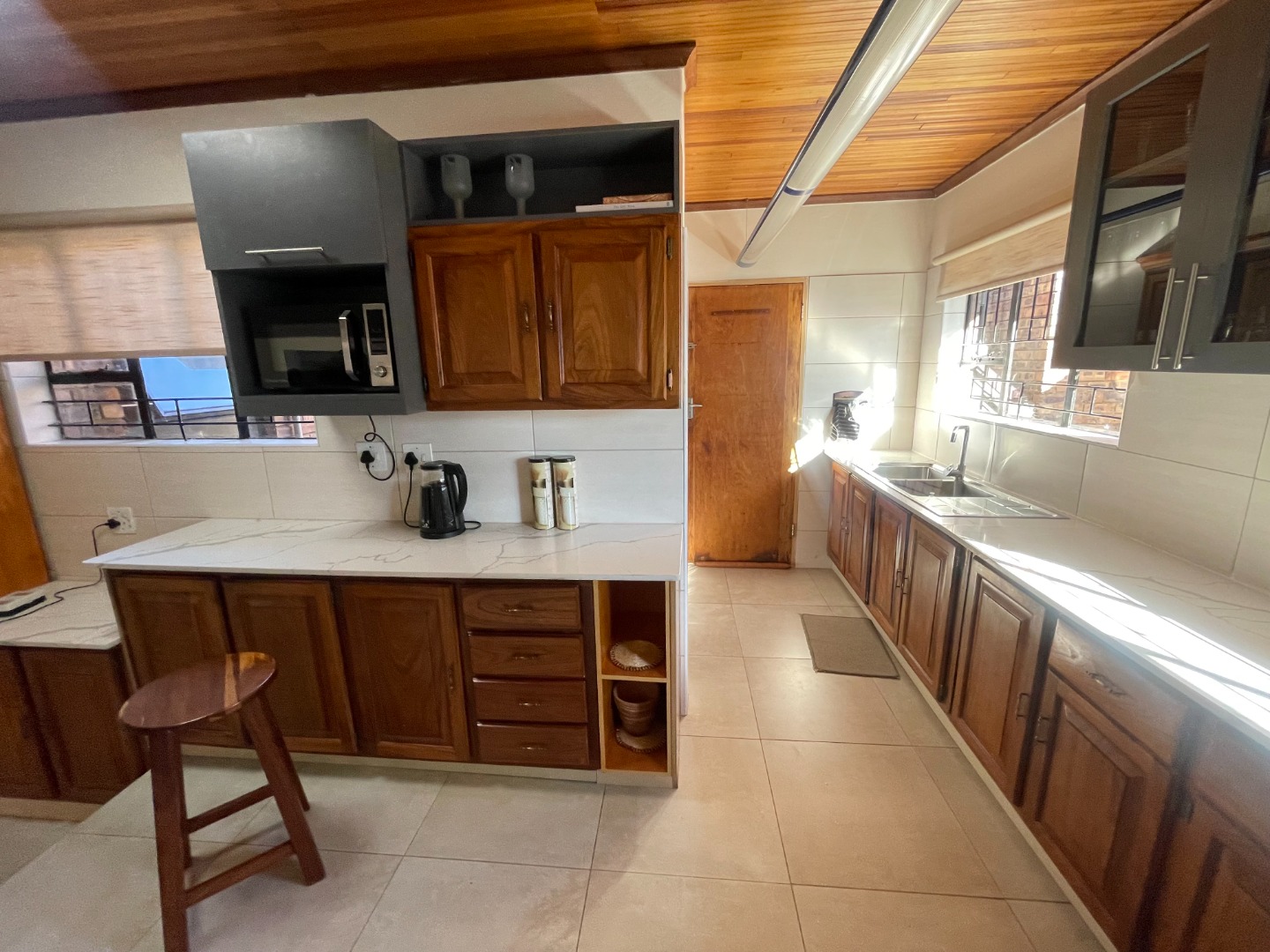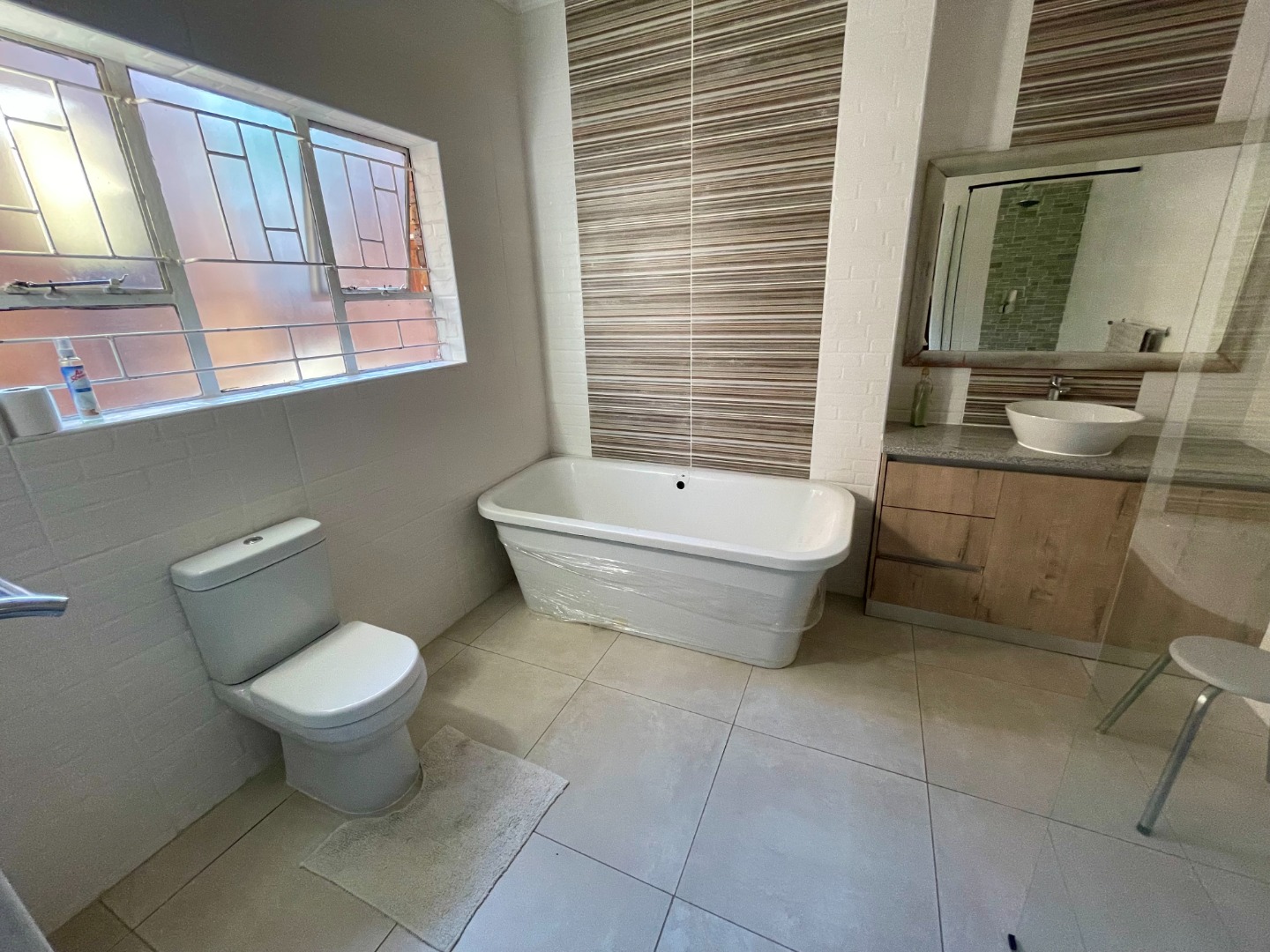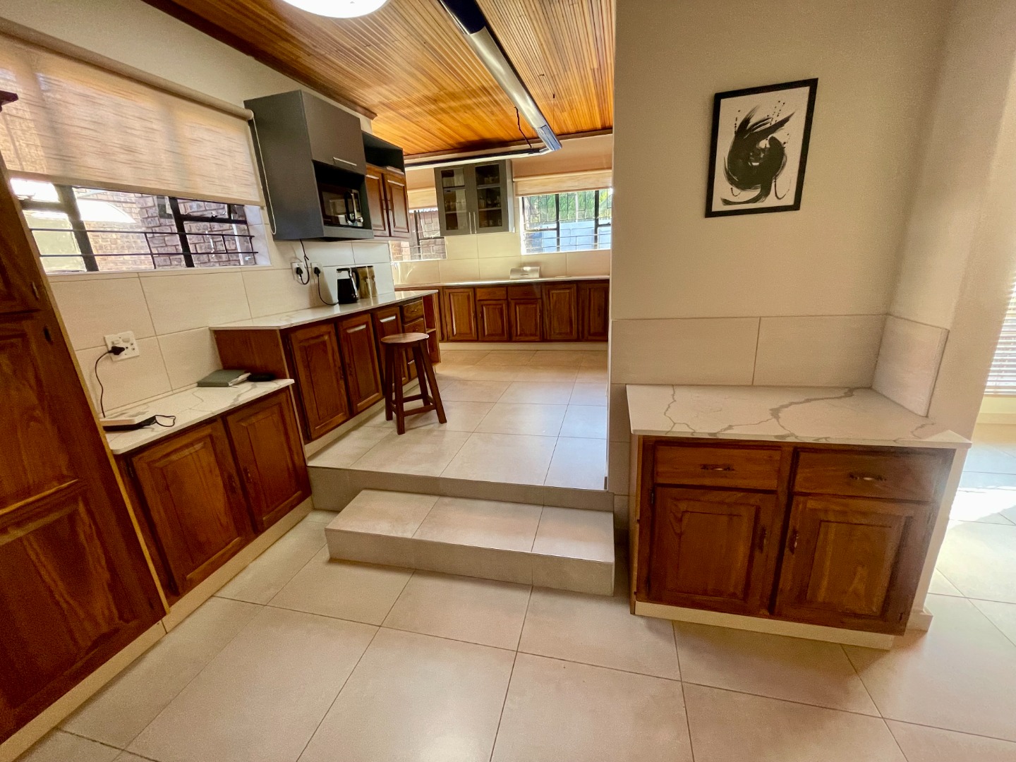 Discover an exceptional residential offering in the esteemed locale of Kinross, Secunda. This distinguished property, set on a generous 1000 sqm erf, presents an immediate impression of refined elegance. A grand entrance hall welcomes you, setting the tone for the sophisticated interiors that unfold within this magnificent home. Designed for discerning tastes, the residence boasts an open-plan layout that seamlessly connects its various living zones. Two expansive lounges provide ample space for relaxation and formal entertaining, complemented by a dedicated dining room. The well-appointed kitchen ensures effortless culinary creation. Further enhancing the interior appeal are a dedicated study for quiet contemplation and a comfortable family TV room, catering to diverse lifestyle needs. Exquisite special lighting and elegant wood ceilings throughout elevate the ambiance, creating an atmosphere of understated luxury. The private wing features four generously proportioned bedrooms, offering serene sanctuaries. Three meticulously designed bathrooms, including a luxurious en-suite, provide ultimate comfort. Step outside to a private oasis designed for grand entertaining: a meticulously landscaped garden with an efficient irrigation system and elegant paving frames a sparkling swimming pool. An impressive lapa and a dedicated braai room, featuring a built-in braai, promise unforgettable outdoor experiences. Practical additions include a charming Wendy house and convenient outside toilets. This pet-friendly haven offers ample space for enjoyment. Security is thoughtfully addressed with the property being totally walled and fitted with robust burglar bars, providing peace of mind. Nestled in the desirable Kinross area, this home offers a tranquil suburban lifestyle while remaining conveniently close to the amenities of Secunda. Key Features: * Four luxurious bedrooms * Three elegant bathrooms, including one en-suite * Two spacious lounges and a family TV room * Dedicated study and dining room * Sparkling swimming pool with lapa and braai room * Double garage and two additional parking spaces * Expansive 1000 sqm erf with irrigated garden * Totally walled property with burglar bars * Open-plan design with special lighting and wood ceilings