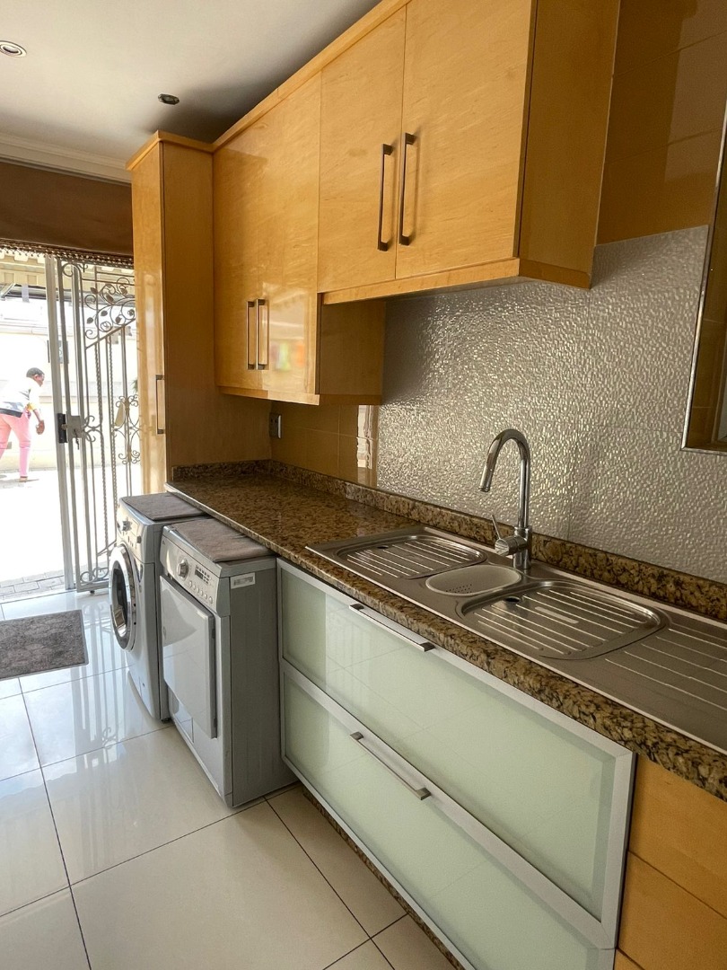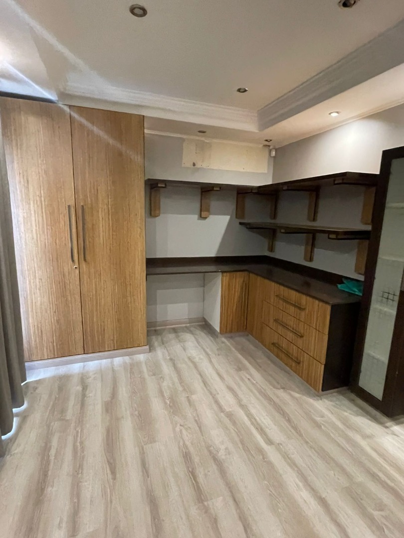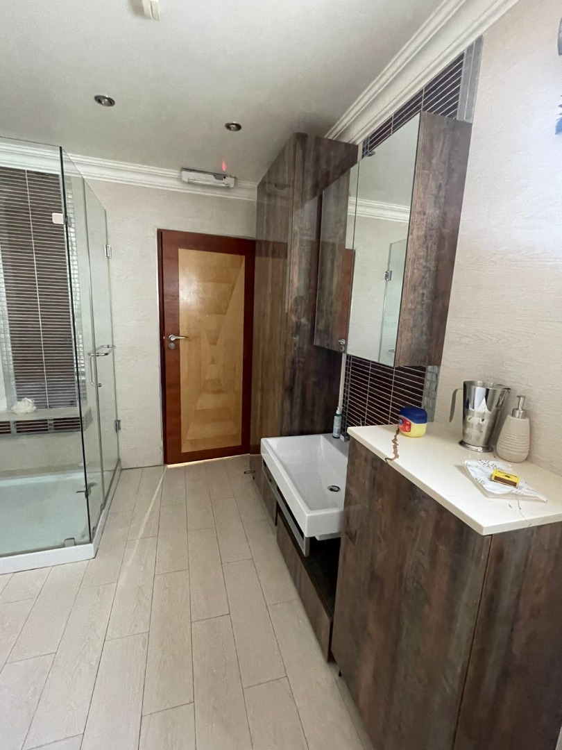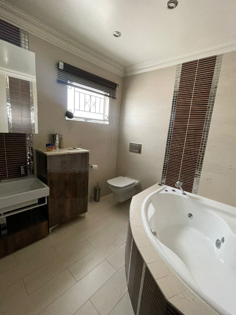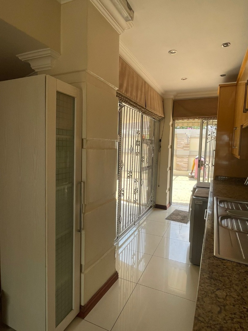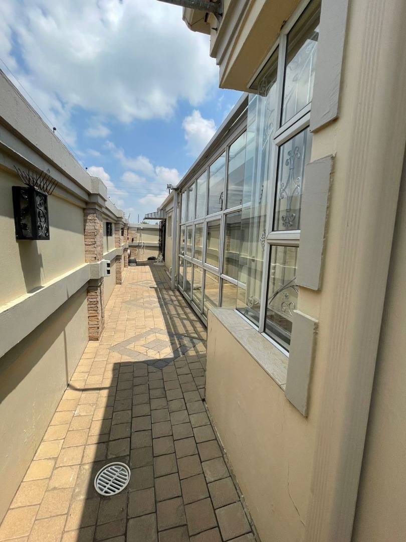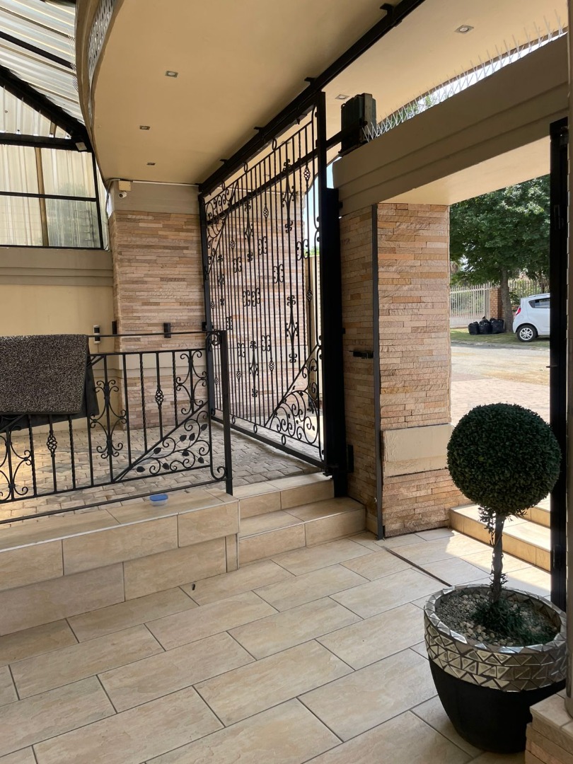 Discover this exceptional residential property for sale in the tranquil suburb of Kinross, Secunda, South Africa. This meticulously designed home offers a harmonious blend of comfort and functionality, perfect for a discerning family. Upon entry, an inviting entrance hall leads into the expansive open-plan living areas, featuring a comfortable lounge and a dedicated family TV room, enhanced by special doors, sliding doors, and special lighting throughout. The property boasts two well-appointed kitchens, complemented by a convenient pantry, providing ample space for culinary pursuits and entertaining guests. Accommodation comprises four generously sized bedrooms and four modern bathrooms, including two luxurious en-suite facilities for added privacy and convenience. A guest toilet is also available. A significant highlight of this property is the inclusion of a versatile flatlet, offering potential for extended family living, guest accommodation, or a private home office. The main residence further benefits from a spa bath, providing a perfect retreat for relaxation after a long day. Beyond the interiors, the property features a dedicated gym, catering to a healthy lifestyle. Practical amenities include two garages and two additional parking spaces, ensuring ample vehicle accommodation. The 800 sqm erf is fully paved and totally walled, offering a neat and secure environment. Sustainability is addressed with water tanks and an irrigation system. Security is paramount, with electric fencing, an access gate, an alarm system, security gates, burglar bars, a security post, and CCTV surveillance providing comprehensive peace of mind. Kinross, situated within Secunda, offers a peaceful residential setting with convenient access to local amenities and services, making it an ideal location for family life. **Key Features:** * Four Bedrooms, Four Bathrooms (Two En-suite) * Two Kitchens with Pantry * Dedicated Flatlet * Open-Plan Lounge and Family TV Room * Private Gym and Spa Bath * Double Garage and Two Parking Spaces * Comprehensive Security: Electric Fencing, Alarm, CCTV * 800 sqm Erf with Paving and Water Tanks