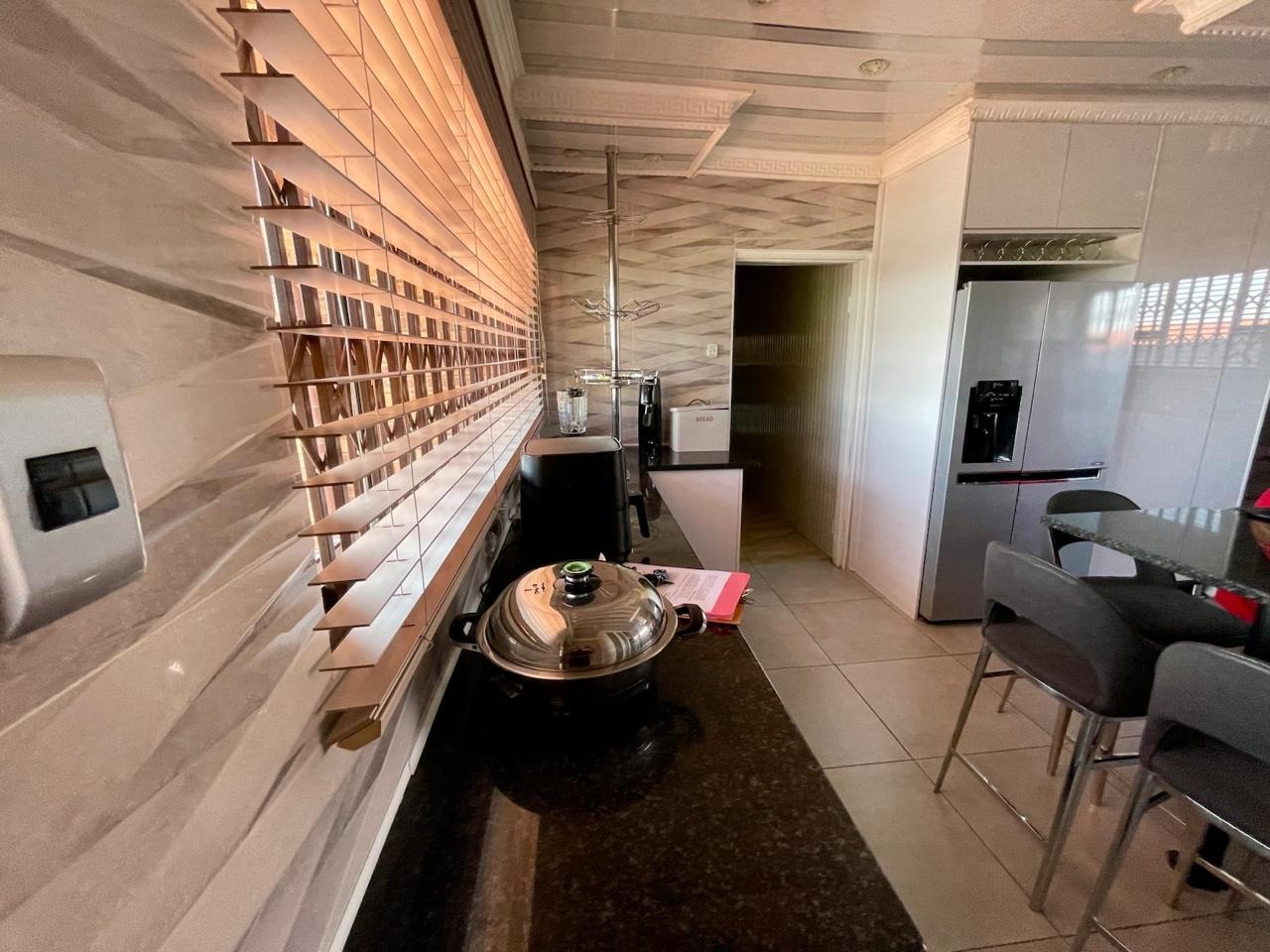 Security is well-addressed with burglar bars, a totally walled perimeter, and an access gate, ensuring peace of mind. Sustainability is enhanced by the presence of water tanks. This Kinross property presents a fantastic opportunity for those looking for a secure and spacious family home in a desirable location.