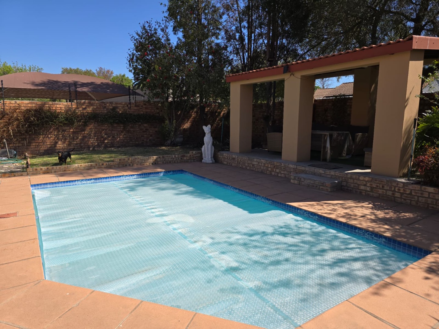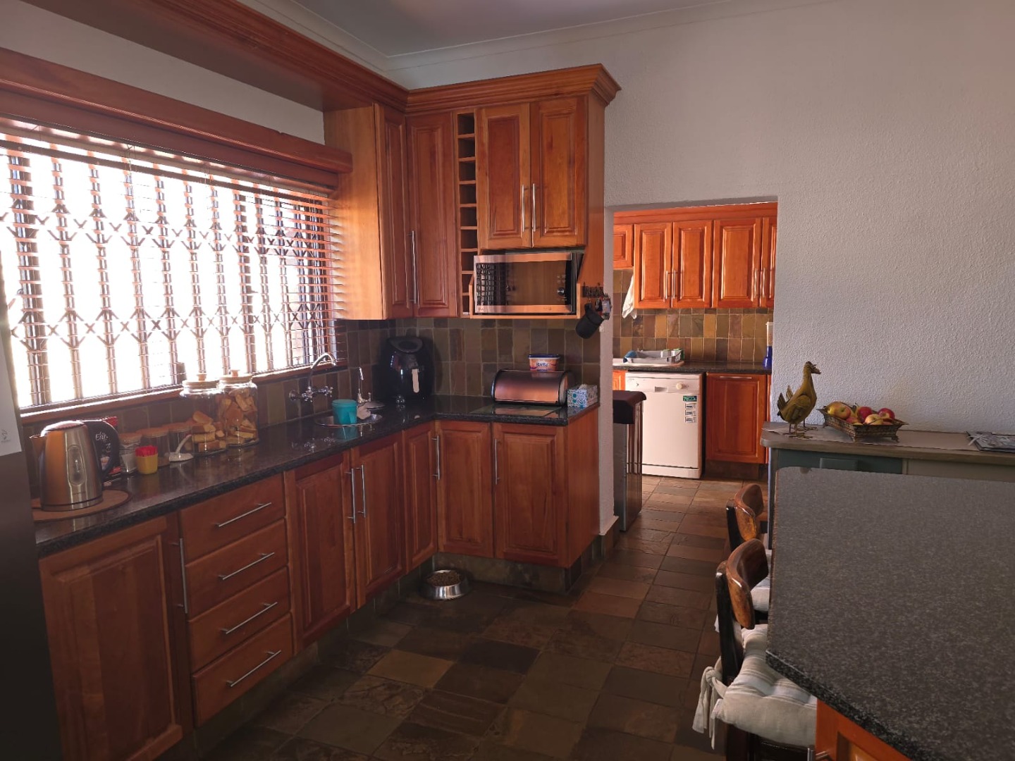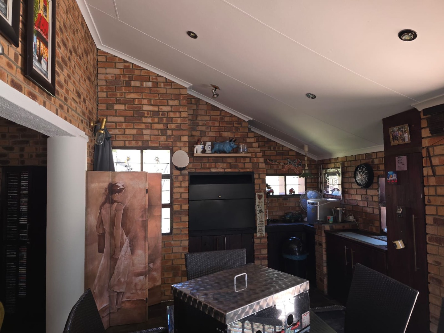 - Expansive entertainment area with sleeper wood cupboards and a built-in braai, seamlessly leading to a sparkling pool.