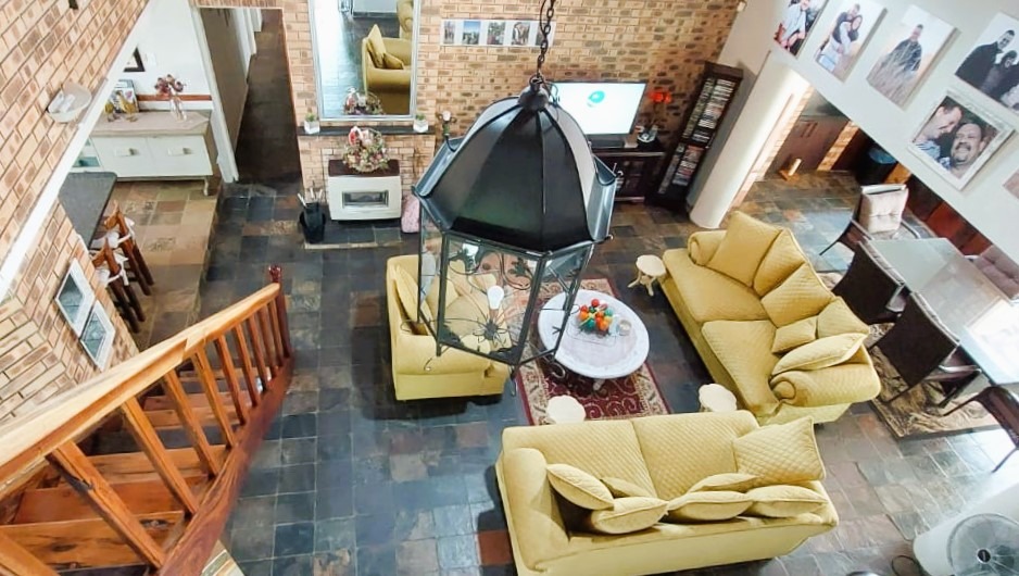 - Open-Plan Living: Spacious lounge and dining area with double volume ceilings, beautiful naught pine accents, a stunning chandelier, and a cozy fireplace.