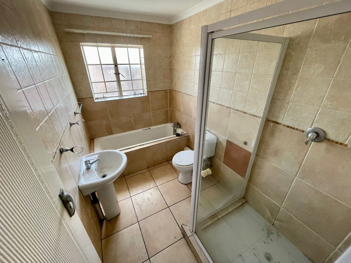 The apartment features two generously sized bedrooms with built-in cupboards and one full bathroom fitted with both a bath and a shower for your convenience.