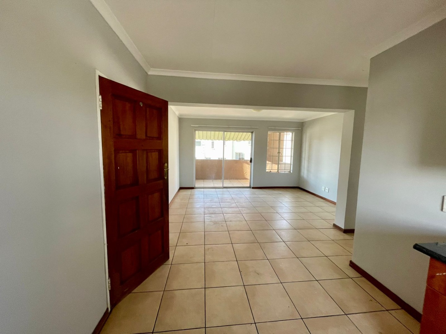This stylish open-plan unit offers a spacious lounge and kitchen area that flows seamlessly onto a lovely private balcony, complete with an outside braai – ideal for relaxing or entertaining.