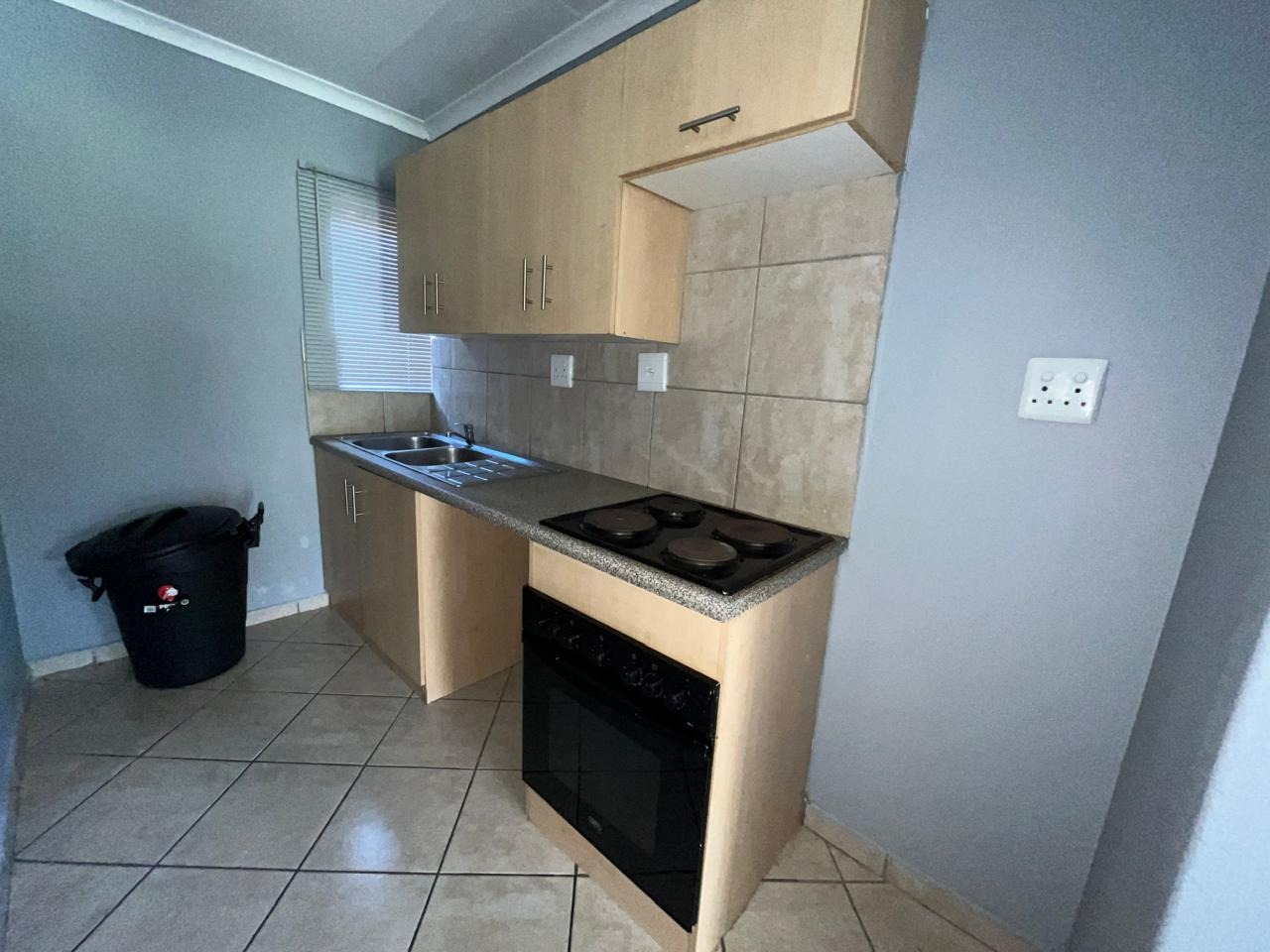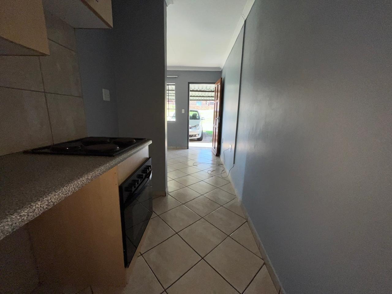 This inviting 2-bedroom, 1-bathroom rental property in Evander presents a practical and comfortable living solution. The interior boasts a fresh, modern aesthetic with recently painted grey walls and durable tiled flooring extending throughout, ensuring easy maintenance and a consistently clean look. The open-plan design creates a seamless flow between the living areas, offering a versatile environment perfect for relaxation and everyday activities. The functional kitchen is well-appointed, featuring an integrated stove and oven, a convenient double stainless-steel sink, and light wood cabinetry, all complemented by a practical tiled backsplash. Ample natural light streams into the rooms through well-placed windows, enhancing the bright and airy atmosphere.